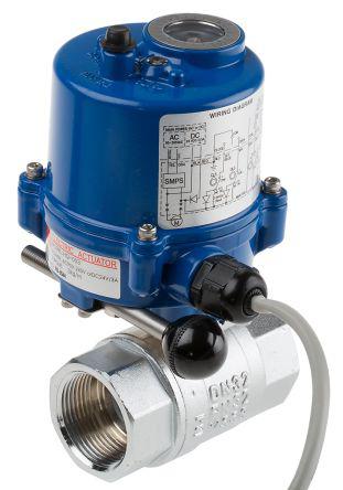 This is Brass Ball Valve with Electric Actuator 1-1/4 in BSP manufactured by RS Pro. The manufacturer part number is 760-5696. The product contains a high-quality ball type valve . The threaded is a bsp standard. It has a typical thread size of 1-1/4in. It provides up to 40 bar maximum working pressure. It has a standard 1-1/4 in bsp connection . The default valve position is nc . It has a direct action type return .