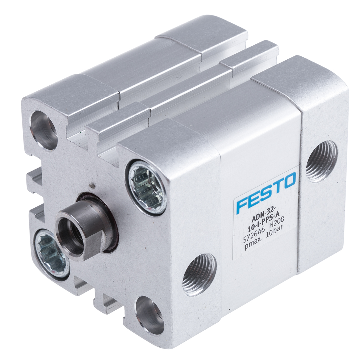 This is Double Action Pneumatic Compact Cylinder 32mm Bore 10mm stroke manufactured by Festo. The manufacturer part number is ADN-32-10-I-PPS-A. Provides g 1/8 of port connection. While the product has supplied with air cushioning. The given dimensions of the product include 47 x 47 x 60mm. It features 10 bar maximum operating pressure. It includes a piston rod thread of female gender . While it has 572646 of model number. The stroke is 10mm. It includes an attractive g 1/8 pneumatic connection . In addition, the height is 47mm. Furthermore, the product is 47mm wide. Its accurate length is 60mm. The product has a adn manufacturer series. Concerning its action options, it allows double action. The bore with 32mm of dimensions. It has a maximum operating temperature of +80°c. Whereas, the minimum operating temperature of the product is -20°c.