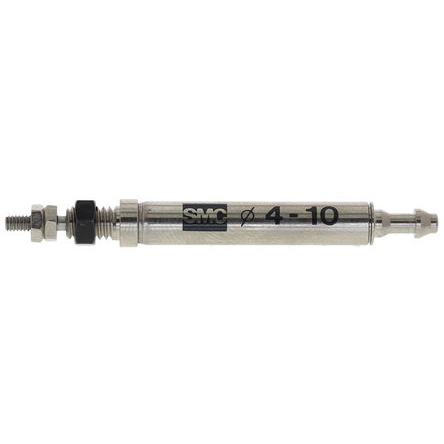 This is Single Action Pneumatic Pin Cylinder manufactured by SMC. The manufacturer part number is CJ1B4-10SU4. Its diameter is 5mm. While the product has supplied with not cushioned cushioning. The given dimensions of the product include 5 (dia.) x 49mm. The typical product's weight is 4.6g. It has about 50 → 500mm/s piston speed . Its accurate length is 49mm. It features 0.7 mpa maximum operating pressure. The stroke is 10mm. The product has a cj1 manufacturer series. Whereas, the minimum operating temperature of the product is -10°c. Concerning its action options, it allows single action. The bore with 4mm of dimensions. It has a maximum operating temperature of +70°c.