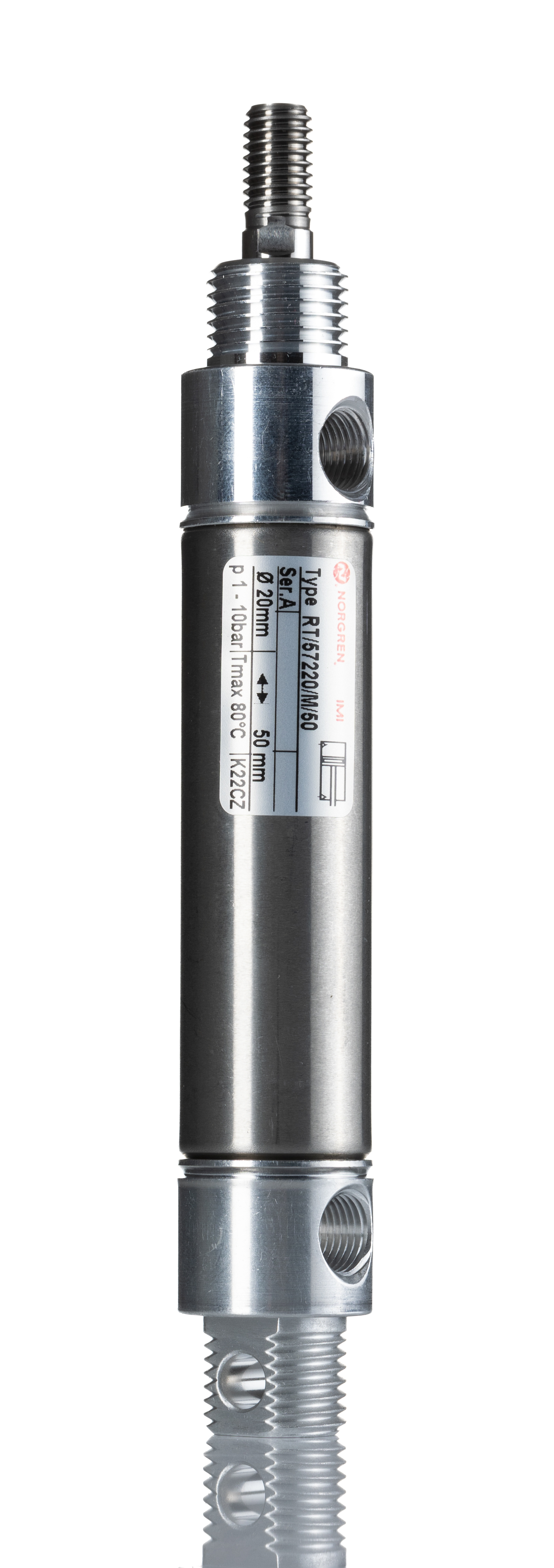 This is Double Action Pneumatic Roundline Cylinder manufactured by Norgren. The manufacturer part number is RT/57220/M/50. Provides rc 1/8 of port connection. Its diameter is 22mm. While the product has supplied with buffer cushioning. The given dimensions of the product include 22 (dia.) x 125.5mm. It features 10 bar maximum operating pressure. It includes a piston rod thread of male gender . Its accurate length is 125.5mm. It includes an attractive rc 1/8 pneumatic connection . The stroke is 50mm. The product has a rt/57210/m/25 manufacturer series. Concerning its action options, it allows double action. The bore with 20mm of dimensions. It has a maximum operating temperature of +80°c. Whereas, the minimum operating temperature of the product is -10°c.