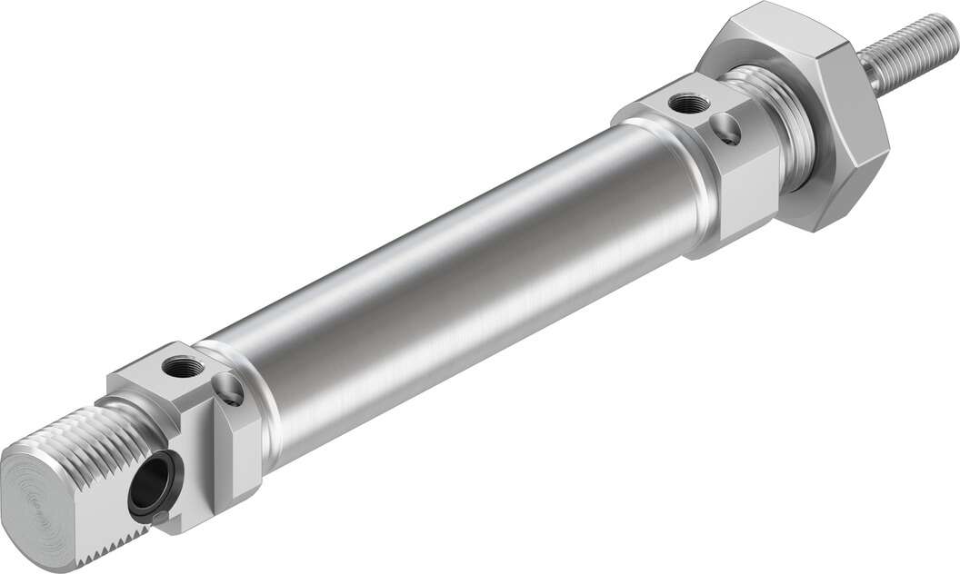 The DSNU series uses a slim, round body design that saves installation space. The piston rod is guided to reduce side-load impact, helping maintain smooth operation over time. The cylinder is built for standard industrial air systems and typical factory environments.