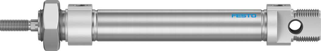 The cylinder body is built with a round profile and durable materials, designed for continuous operation. It includes adjustable pneumatic cushioning (PPS), which helps reduce impact at the end of each stroke. This protects both the cylinder and connected components from wear over time.