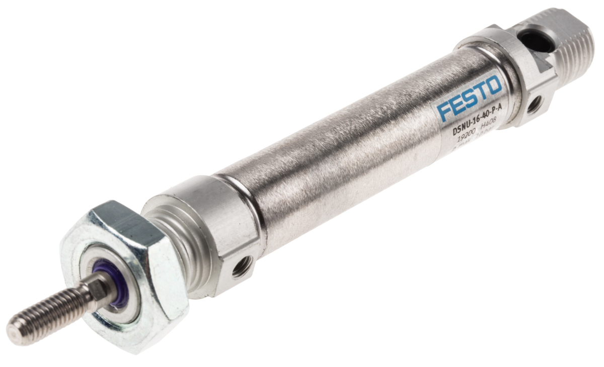 This is Double Action Pneumatic Roundline Cylinder manufactured by Festo. The manufacturer part number is DSNU-16-40-P-A. Provides m5 of port connection. Its diameter is 20mm. While the product has supplied with elastomer cushioning. The given dimensions of the product include 20 x 151mm. The typical product's weight is 108.3g. It includes a piston rod thread of male gender . While it has 19200 of model number. Its accurate length is 151mm. It includes an attractive m5 pneumatic connection . It complies with vdma24364 VDMA standard . The stroke is 40mm. It complies with iso 6432 ISO standard . Concerning its action options, it allows double action. The bore with 16mm of dimensions. It features 10 bar maximum operating pressure. It has a maximum operating temperature of +80°c. Whereas, the minimum operating temperature of the product is -20°c. The product has a dsnu manufacturer series.