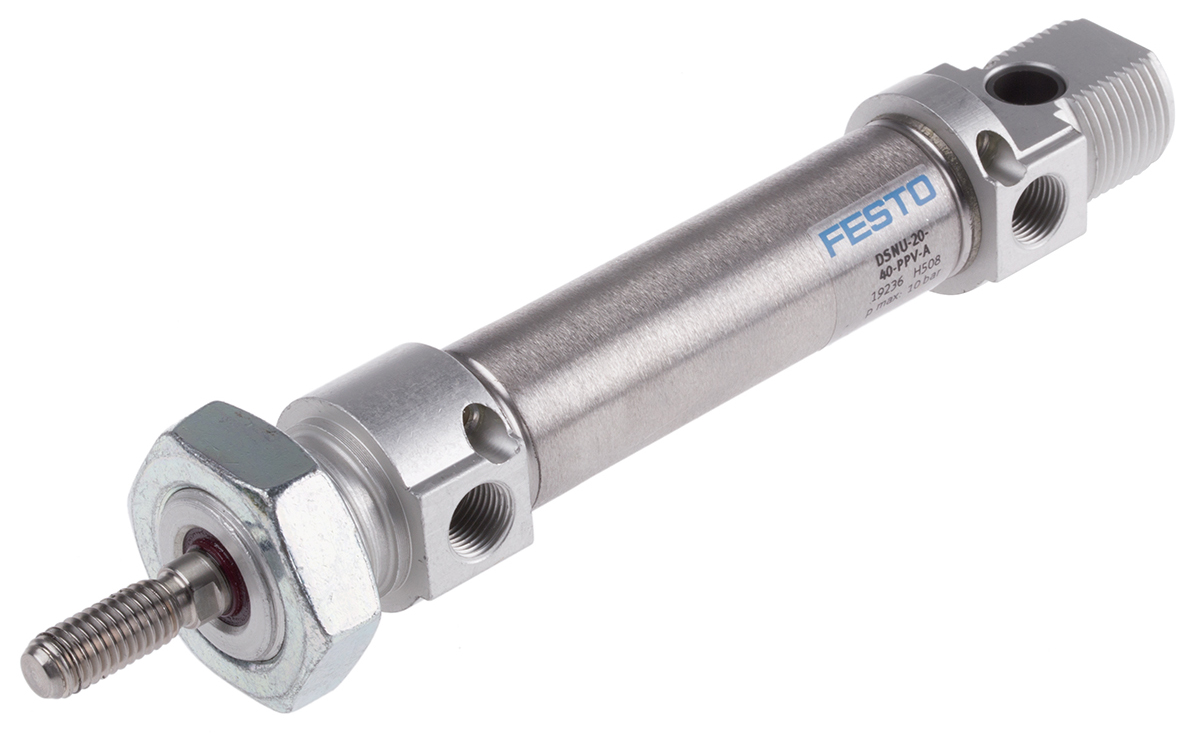 This is Double Action Pneumatic Roundline Cylinder manufactured by Festo. The manufacturer part number is DSNU-20-40-PPV-A. Provides g 1/8 of port connection. Its diameter is 27mm. While the product has supplied with pneumatic cushioning cushioning. The given dimensions of the product include 27 x 172mm. The typical product's weight is 215.6g. It includes a piston rod thread of male gender . While it has 19236 of model number. Its accurate length is 172mm. It includes an attractive g 1/8 pneumatic connection . It complies with 24364 VDMA standard . The stroke is 40mm. It complies with 6432 ISO standard . Concerning its action options, it allows double action. The bore with 20mm of dimensions. It features 10 bar maximum operating pressure. It has a maximum operating temperature of +80°c. Whereas, the minimum operating temperature of the product is -20°c. The product has a dsnu manufacturer series.