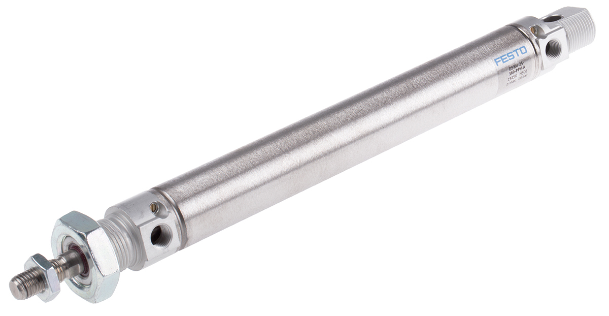 This is Double Action Pneumatic Roundline Cylinder manufactured by Festo. The manufacturer part number is DSNU-25-160-PPV-A. Provides g 1/8 of port connection. Its diameter is 27mm. While the product has supplied with pneumatic cushioning cushioning. The given dimensions of the product include 27 x 301.5mm. The typical product's weight is 414g. It includes a piston rod thread of male gender . While it has 19250 of model number. Its accurate length is 301.5mm. It includes an attractive g 1/8 pneumatic connection . It complies with 24364 VDMA standard . The stroke is 160mm. It complies with 6432 ISO standard . Concerning its action options, it allows double action. The bore with 25mm of dimensions. It features 10 bar maximum operating pressure. It has a maximum operating temperature of +80°c. Whereas, the minimum operating temperature of the product is -20°c. The product has a dsnu manufacturer series.