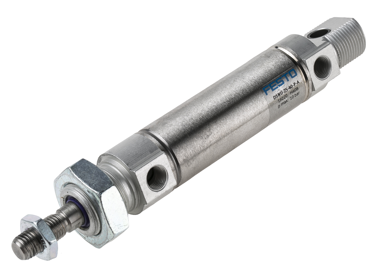 This is Double Action Pneumatic Roundline Cylinder manufactured by Festo. The manufacturer part number is DSNU-25-40-P-A. Provides g 1/8 of port connection. Its diameter is 27mm. While the product has supplied with elastomer cushioning. The given dimensions of the product include 27 x 181.5mm. The typical product's weight is 282g. It includes a piston rod thread of male gender . While it has 19220 of model number. Its accurate length is 181.5mm. It includes an attractive g 1/8 pneumatic connection . It complies with vdma24364 VDMA standard . The stroke is 40mm. It complies with iso 6432 ISO standard . Concerning its action options, it allows double action. The bore with 25mm of dimensions. It features 10 bar maximum operating pressure. It has a maximum operating temperature of +80°c. Whereas, the minimum operating temperature of the product is -20°c. The product has a dsnu manufacturer series.