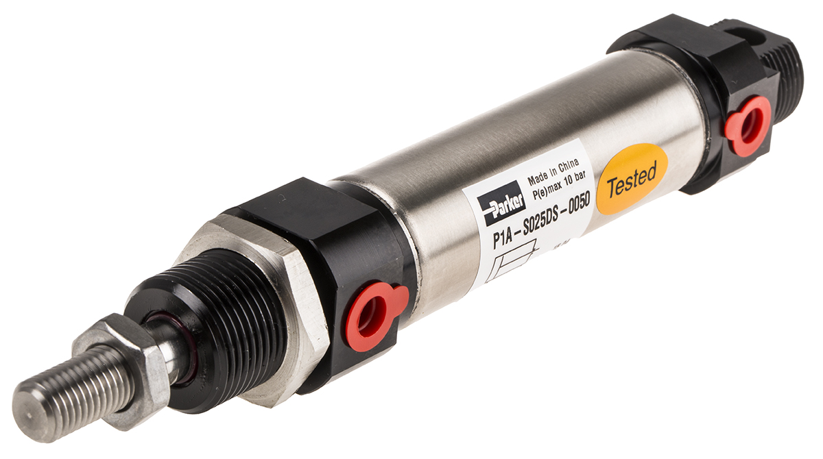 This is Double Action Pneumatic Roundline Cylinder manufactured by Parker. The manufacturer part number is P1A-S025DS-0050. Provides g 1/8 of port connection. While the product has supplied with buffer cushioning. The given dimensions of the product include 182 x 26.8 x 26.8mm. It features 10 bar maximum operating pressure. Its accurate length is 182mm. In addition, the height is 26.8mm. Furthermore, the product is 26.8mm wide. The stroke is 50mm. The product has a p1a manufacturer series. Concerning its action options, it allows double action. The bore with 25mm of dimensions. It has a maximum operating temperature of +80°c. Whereas, the minimum operating temperature of the product is -20°c.