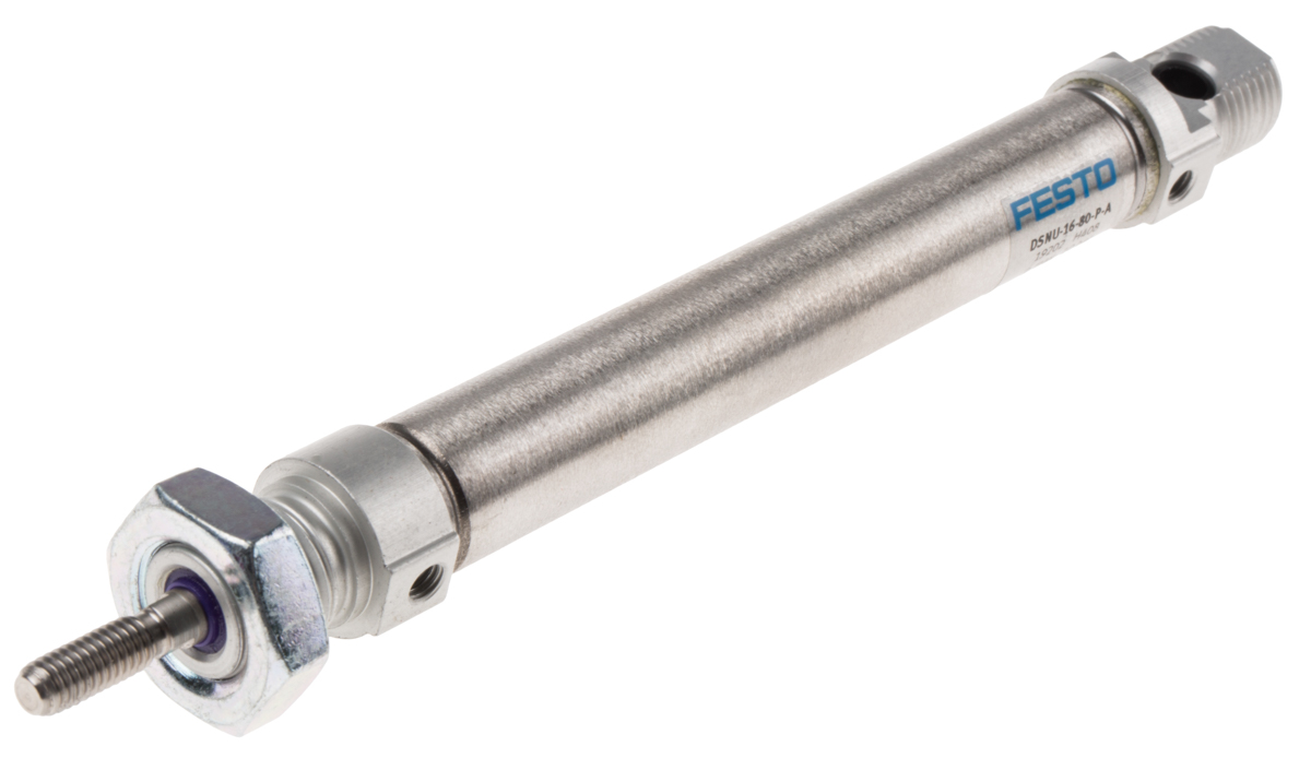 This is Double Action Pneumatic Roundline Cylinder manufactured by Festo. The manufacturer part number is DSNU-16-80-P-A. Maximum Piston Speed Required 100mm/s . While the product has supplied with elastic cushioning. It has a model number 19202. Its accurate length is 191mm. pneumatic cylinder is a versatile product designed to provide user-defined applications. It has a maximum operating temperature of 80°c. It has a swivel, foot, direct, front, flange, rear type mount .