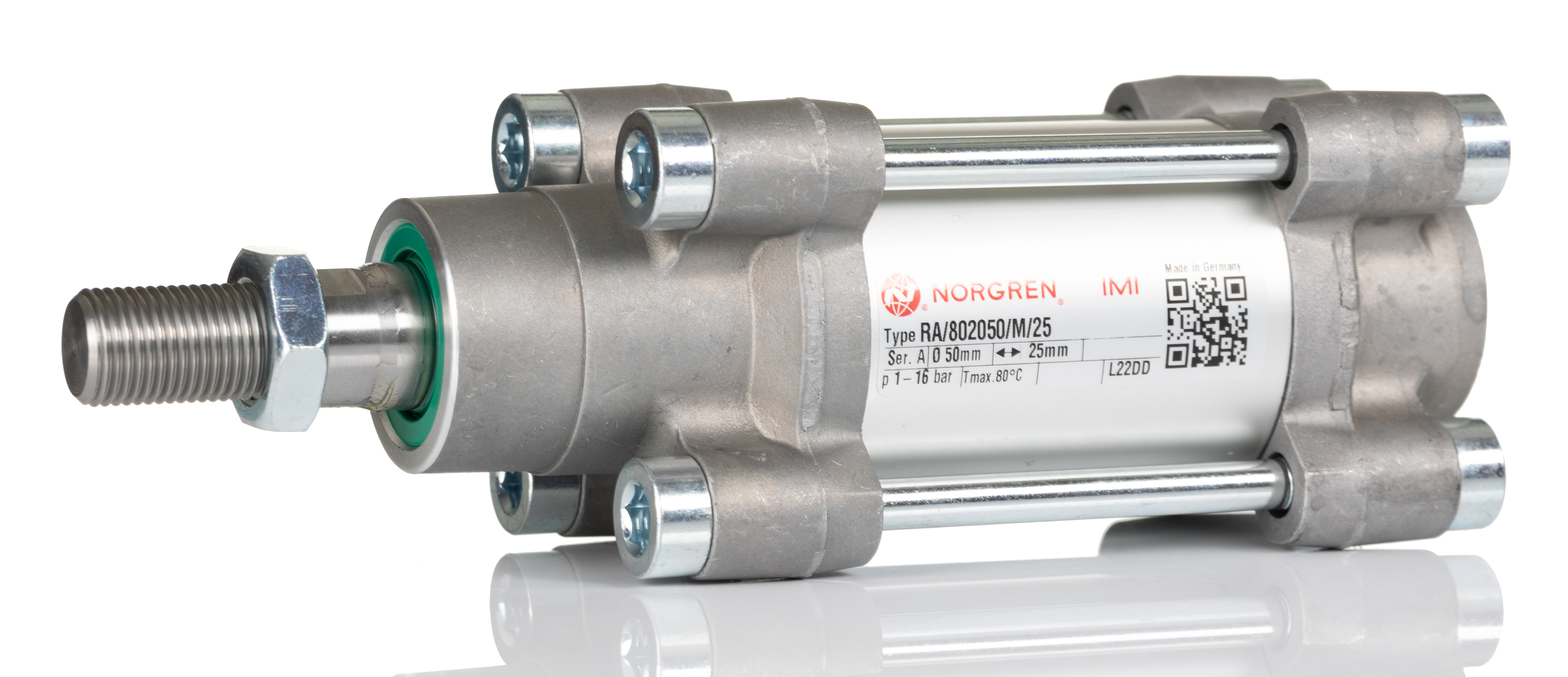This is Double Acting Cylinder 50mm Bore 25mm Stroke RA Series Double Acting manufactured by IMI Norgren. The manufacturer part number is RA/802050/M/25. Its diameter is 50mm. While the product has supplied with cushioned cushioning. The given dimensions of the product include 178.5 x 65 x 65mm. The typical product's weight is 610g. Moreover, its stroke interval weight is 0.12 kg (at 25 mm) . It includes a piston rod thread of male gender . Its accurate length is 178.5mm. It includes an attractive g 1/4 pneumatic connection . In addition, the height is 65mm. Furthermore, the product is 65mm wide. The stroke is 25mm. It features 12 bar maximum operating pressure. The product has a ra manufacturer series. Whereas, the minimum operating temperature of the product is -20°c. Concerning its action options, it allows double action. The bore with 50mm of dimensions. Its test weight is 1.02 kg (at 0 mm) . It has a maximum operating temperature of +80°c.