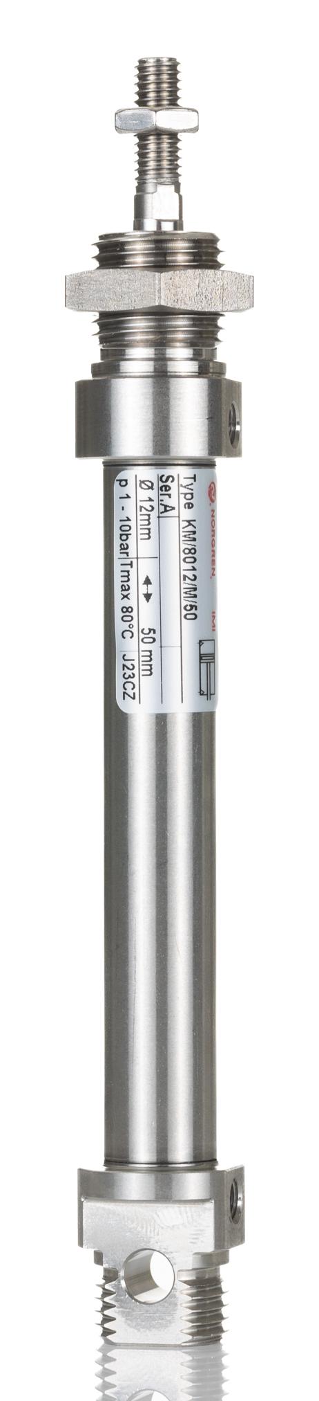 This is Double Acting Cylinder - 12mm Bore 50mm Stroke KM/8000/M Series Double Acting manufactured by Norgren. The manufacturer part number is KM/8012/M/50. While the product has supplied with buffer cushioning. Whereas, the minimum operating temperature of the product is -10°c. It features 10 bar maximum operating pressure. While it has km/8012/m/50 of model number. Its accurate length is 99mm. It includes an attractive m6 pneumatic connection . The stroke is 50mm. The product has a km/8000/m manufacturer series. It complies with iso 6432 ISO standard . Concerning its action options, it allows double action. The bore with 12mm of dimensions. It has a maximum operating temperature of +80°c.