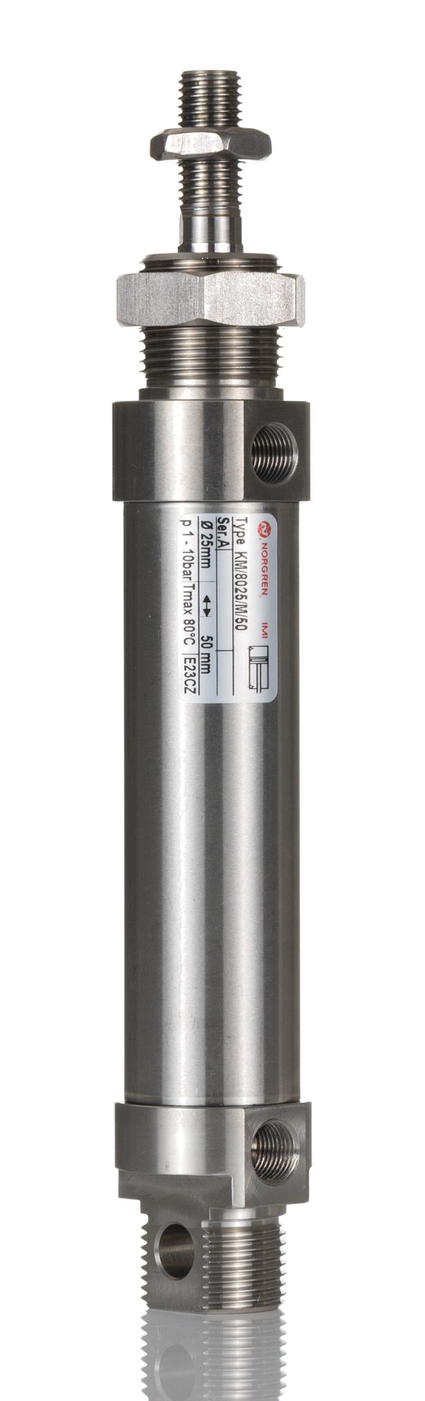 This is Double Acting Cylinder - 25mm Bore 50mm Stroke KM/8000/M Series Double Acting manufactured by Norgren. The manufacturer part number is KM/8025/M/50. While the product has supplied with buffer cushioning. Whereas, the minimum operating temperature of the product is -10°c. It features 10 bar maximum operating pressure. While it has km/8025/m/50 of model number. Its accurate length is 135mm. It includes an attractive m10 pneumatic connection . The stroke is 50mm. The product has a km/8000/m manufacturer series. It complies with iso 6432 ISO standard . Concerning its action options, it allows double action. The bore with 25mm of dimensions. It has a maximum operating temperature of +80°c.