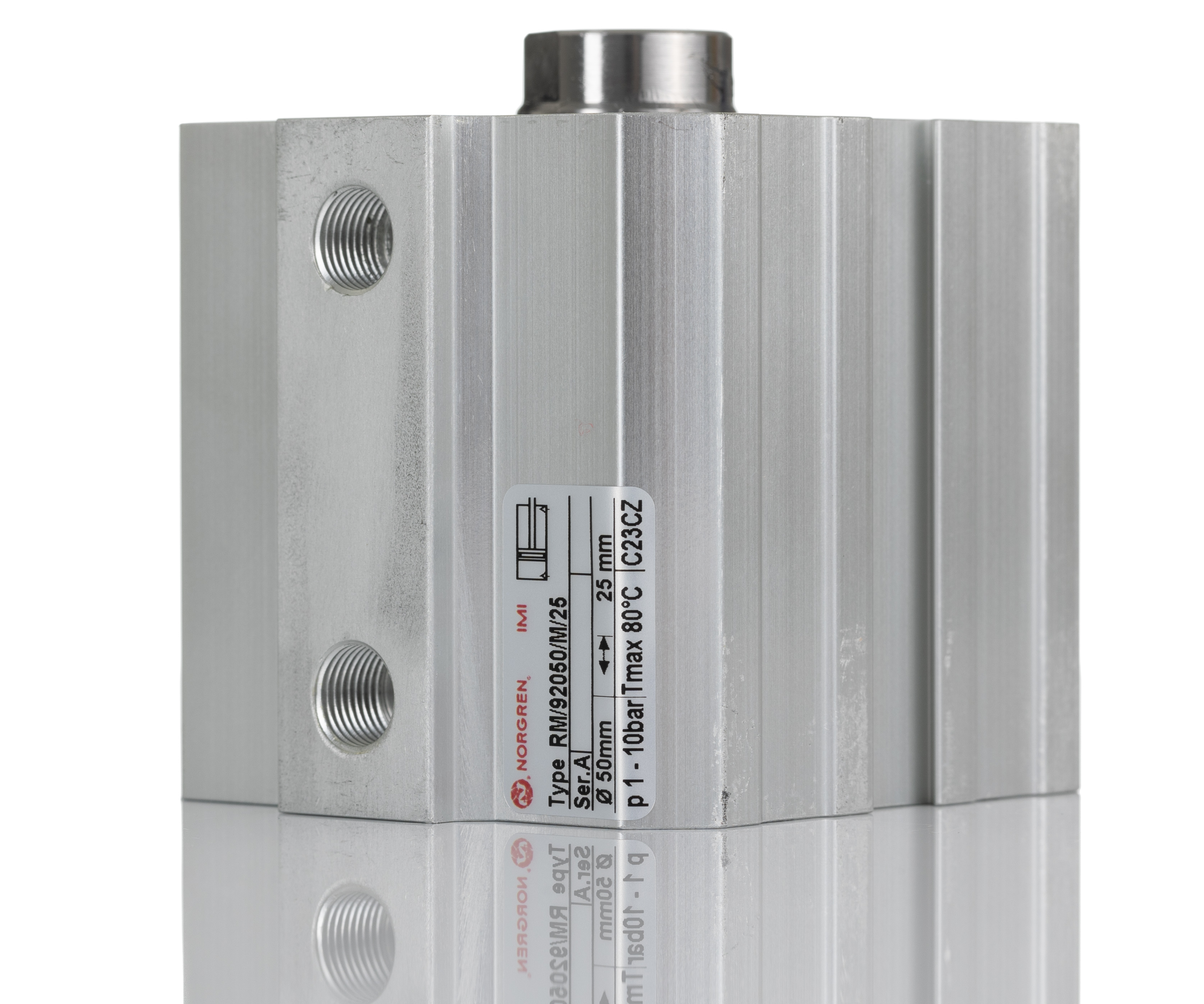 This is Pneumatic Compact Cylinder - 50mm Bore 25mm Stroke RM/92000/M Series Double Acting manufactured by Norgren. The manufacturer part number is RM/92050/M/25. Its diameter is 50mm. It features 10 bar maximum operating pressure. The given dimensions of the product include 68.5 x 68 x 63mm. The typical product's weight is 1.4kg. Its accurate length is 68mm. In addition, the height is 68.5mm. Furthermore, the product is 63mm wide. The stroke is 25mm. The product has a rm/92000/m manufacturer series. Whereas, the minimum operating temperature of the product is -5°c. Concerning its action options, it allows double action. The bore with 50mm of dimensions. It has a maximum operating temperature of +80°c.