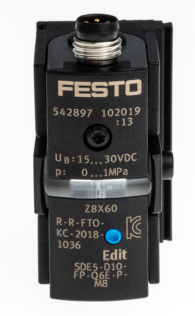 This is Pressure Switch Push In 6 mm 0bar to 10 bar manufactured by Festo. The manufacturer part number is SDE5-D10-FP-Q6E-P-M8. Provides 6 mm tubing of port connection. Whereas, the minimum operating temperature of the product is 0°c. It features 10bar maximum operating pressure. It is IP rated with ip40. It has a minimum 0bar operating pressure . It is suitable for air media . Features 12 to 24v dc supply voltage. It has a maximum operating temperature of +50°c.