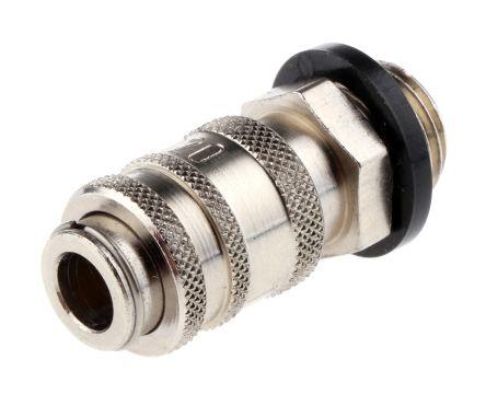 This is Brass Pneumatic Quick Connect Coupling G 1/8 Male Threaded manufactured by RS Pro. The manufacturer part number is 020 EG 10. It has a male gender thread . A quality product with a nice nickel plated finish. It features 35 bar maximum operating pressure. The threaded is a g standard. The product is made from highly stable and reliable brass. It complies with rectus 20, rectus 91, walther 06-003 connection standard . It coupling is of male gender . It has a typical thread size of 1/8 in. The threaded connection is g 1/8 male. The product has a 20 manufacturer series. Whereas, the minimum operating temperature of the product is -20°c. Its seal is made using nitrile rubber material . It has a maximum operating temperature of +100°c. It allows threaded connection type.