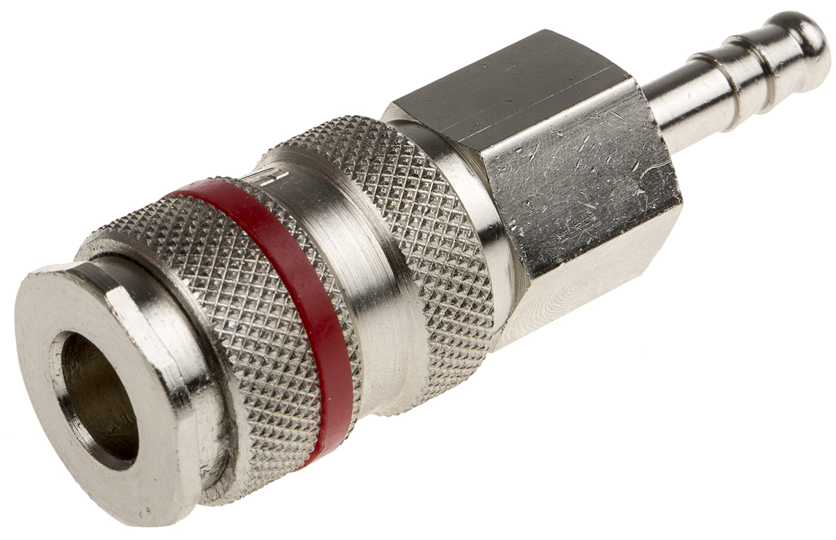 This is Brass Pneumatic Quick Connect Coupling Hose Barb 6mm Hose Barb Connection manufactured by RS Pro. The manufacturer part number is 667-1721. It has a male gender thread . A quality product with a nice nickel plated finish. It features 35bar maximum operating pressure. It has a standard 6mm hose barb connection . The product is made from highly stable and reliable brass. It complies with plc 60, rectus 19 connection standard . It coupling is of male gender . The product has a 19 manufacturer series. Whereas, the minimum operating temperature of the product is -20°c. Its seal is made using nitrile rubber material . It has a maximum operating temperature of +100°c. It allows hose barb connection type.