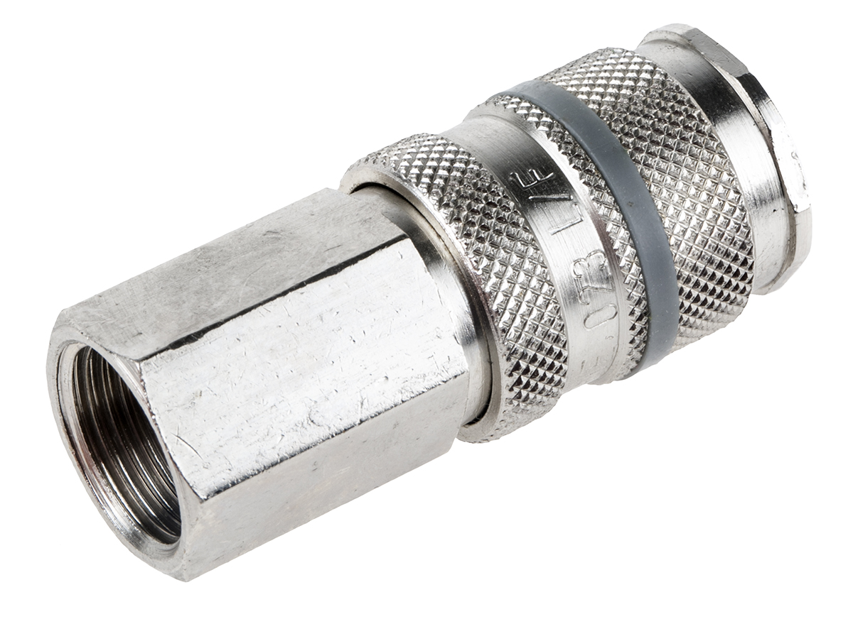 This is Brass Pneumatic Quick Connect Coupling G 3/8 Female Threaded manufactured by RS Pro. The manufacturer part number is 667-1885. It has a female gender thread . A quality product with a nice nickel plated finish. It features 35bar maximum operating pressure. The threaded is a g standard. The product is made from highly stable and reliable brass. It complies with cejn 310, forster, hansen 3000, iso 6150 b, parker legris 1/4, rectus 23, tst 024 atlas copco qic 08, us mil 4109 1/4 connection standard . It coupling is of female gender . It has a typical thread size of 3/8in. The threaded connection is g 3/8 female. The product has a 23 manufacturer series. Whereas, the minimum operating temperature of the product is -20°c. Its seal is made using nitrile rubber material . It has a maximum operating temperature of +100°c. It allows threaded connection type.
