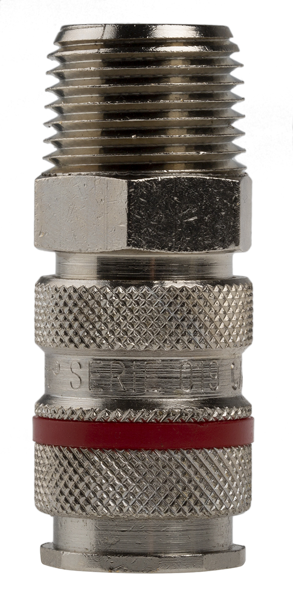 This is Brass Pneumatic Quick Connect Coupling R 1/2 Male Threaded manufactured by RS Pro. The manufacturer part number is 667-1740. It has a male gender thread . A quality product with a nice nickel plated finish. It features 35bar maximum operating pressure. The threaded is a r standard. The product is made from highly stable and reliable brass. It complies with plc 60, rectus 19 connection standard . The threaded connection is r 1/2 male. It coupling is of male gender . It has a typical thread size of 1/2in. Its coupling type is quick connect coupling socket . The product has a 19 manufacturer series. Whereas, the minimum operating temperature of the product is -20°c. Its seal is made using nitrile rubber material . It has a maximum operating temperature of +100°c. It allows threaded connection type.