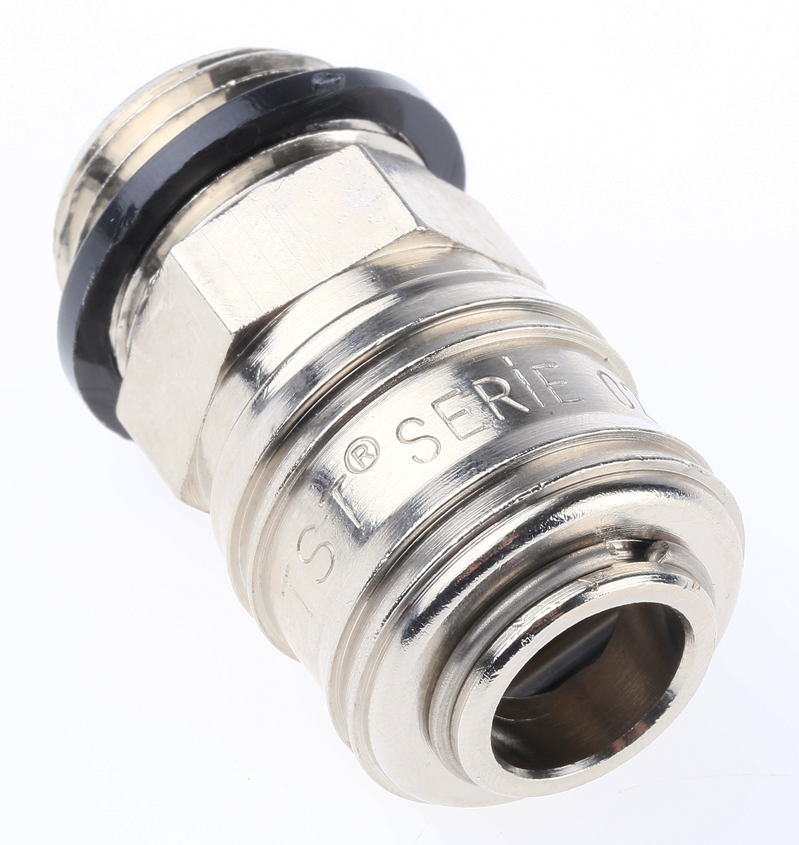 This is Brass Pneumatic Quick Connect Coupling G 1/2 Male Threaded manufactured by RS Pro. The manufacturer part number is 667-1992. It has a male gender thread . A quality product with a nice nickel plated finish. It features 35bar maximum operating pressure. The threaded is a g standard. The product is made from highly stable and reliable brass. It complies with cejn 320, jwl 520, jwl 530, parker pe, rectus 25, rectus 26, tst 025 connection standard . It coupling is of male gender . It has a typical thread size of 1/2in. The threaded connection is g 1/2 male. The product has a 26 manufacturer series. Whereas, the minimum operating temperature of the product is -20°c. Its seal is made using nitrile rubber material . It has a maximum operating temperature of +100°c. It allows threaded connection type.