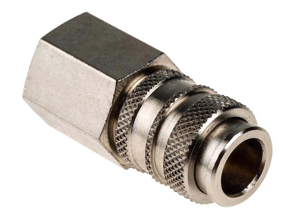 This is Brass Pneumatic Quick Connect Coupling G 1/4 Female Threaded manufactured by RS Pro. The manufacturer part number is 667-1838. It has a female gender thread . A quality product with a nice nickel plated finish. It features 35bar maximum operating pressure. The threaded is a g standard. The product is made from highly stable and reliable brass. It complies with camozzi, legris, rectus 21, rectus 90 connection standard . It coupling is of female gender . It has a typical thread size of 1/4in. The threaded connection is g 1/4 female. The product has a 21 manufacturer series. Whereas, the minimum operating temperature of the product is -20°c. Its seal is made using nitrile rubber material . It has a maximum operating temperature of +100°c. It allows threaded connection type.