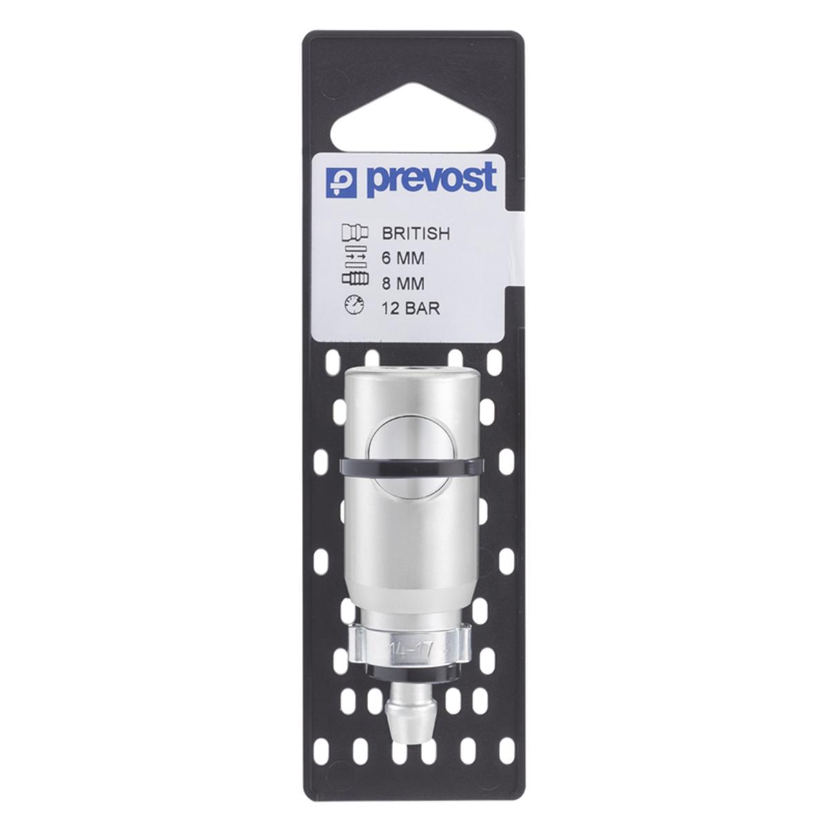 This is Pneumatic Quick Connect Coupling Metal Hose Barb manufactured by PREVOST. The manufacturer part number is BRM 061810CP. It features 12bar maximum operating pressure. It has a standard 10mm hose barb connection . The product is made from highly stable and reliable treated steel. It complies with british standard 6 connection standard . Its coupling type is quick connect coupling socket . The product has a brm 06 manufacturer series. Whereas, the minimum operating temperature of the product is -15°c. It has a maximum operating temperature of +70°c. It allows hose barb connection type.