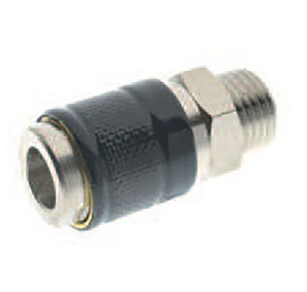 This is BSP MALE QUICK COUPLING 1/8 manufactured by RS PRO. The manufacturer part number is 187-8793. It has a male gender thread . Whereas, the minimum operating temperature of the product is -20°c. It features 12bar maximum operating pressure. The threaded is a bsp standard. The product is made from highly stable and reliable brass. It coupling is of female gender . It has a typical thread size of 1/8in. The threaded connection is g 1/8 male. Its seal is made using nbr material . It has a maximum operating temperature of +80°c. It allows threaded connection type.
