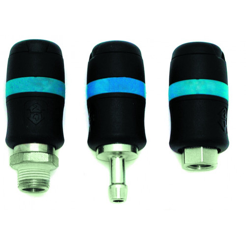 This is Composite Body Male Safety Quick Connect Coupling Threaded manufactured by SAM. The manufacturer part number is 19082S. The product is made from highly stable and reliable composite body. It complies with airflow connection standard . It coupling is of male gender . It has a typical thread size of 1/4in. Its coupling type is quick connect coupling plug . The product has a 1906/1907 manufacturer series. It allows threaded connection type.