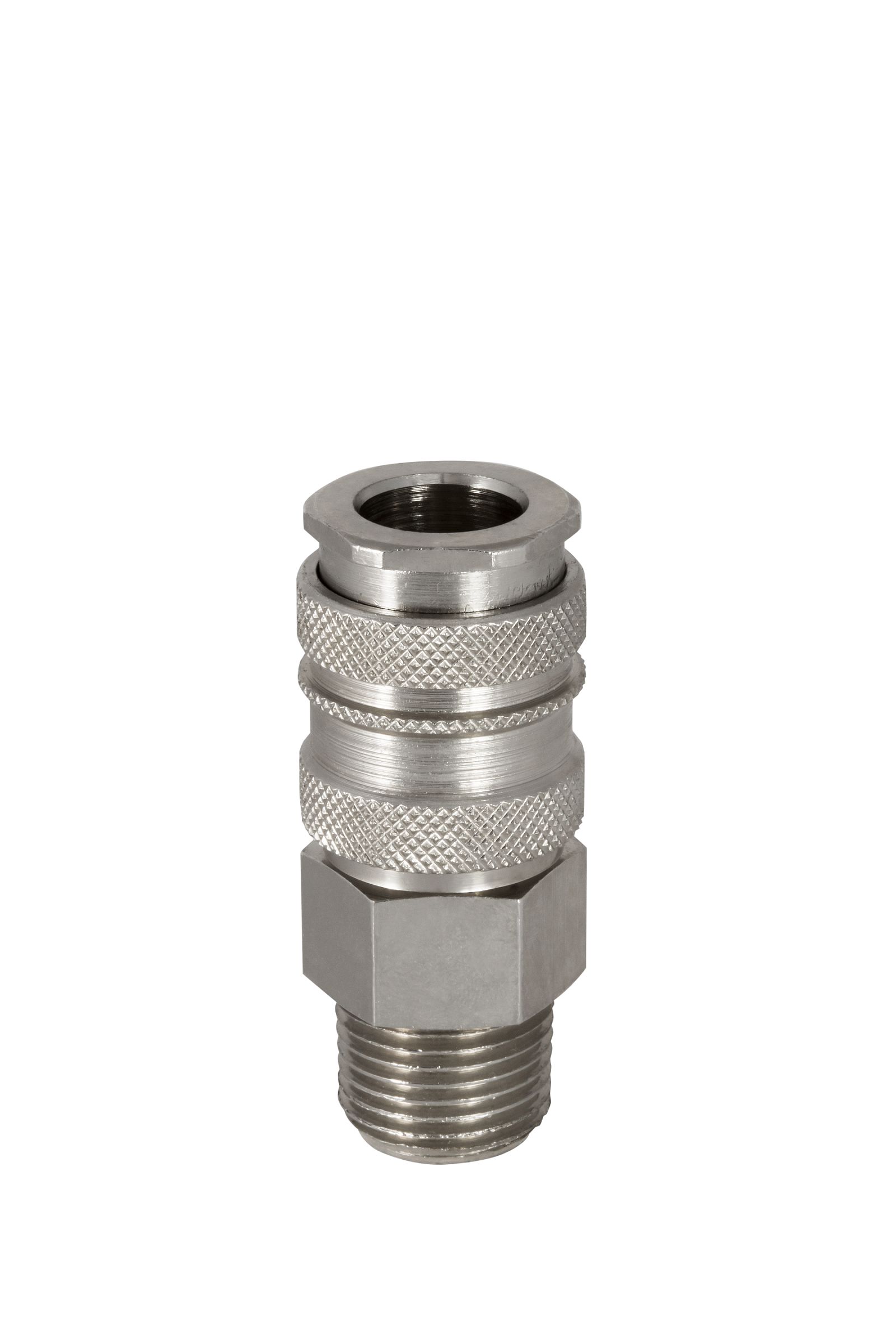 This is Brass Stainless Steel Male Pneumatic Quick Connect Coupling R 1/4 Male Threaded manufactured by RS PRO. The manufacturer part number is 325-377. It has a male gender thread . A quality product with a nice nickel plated finish. It features 35bar maximum operating pressure. The threaded is a bspt standard. The product is made from highly stable and reliable brass, steel. It complies with euro 10 connection standard . The threaded connection is bspt 1/4 in male. It coupling is of female gender . It has a typical thread size of 1/4in. Its coupling type is quick connect coupling socket . Whereas, the minimum operating temperature of the product is -20°c. Its seal is made using nbr material . It has a maximum operating temperature of 100°c. It allows threaded connection type.