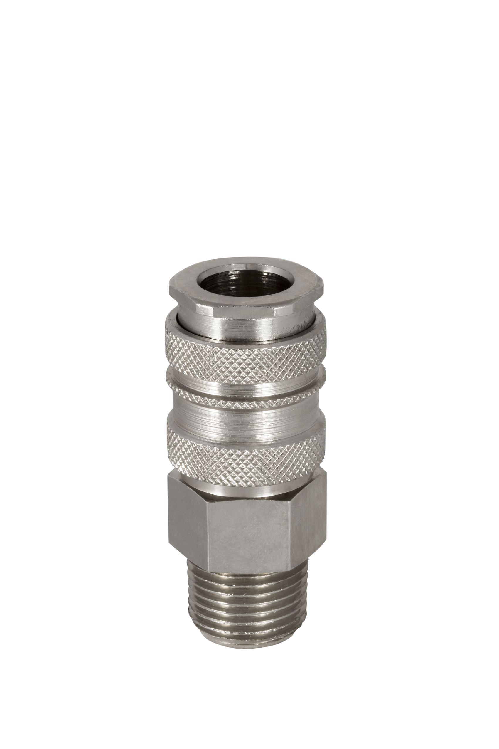 This is Brass Stainless Steel Male Pneumatic Quick Connect Coupling R 3/4 Male Threaded manufactured by RS PRO. The manufacturer part number is 325-382. It has a male gender thread . A quality product with a nice nickel plated finish. It features 35bar maximum operating pressure. The threaded is a bspt standard. The product is made from highly stable and reliable brass, steel. It complies with euro 10 connection standard . The threaded connection is bspt 3/4 male. It coupling is of female gender . It has a typical thread size of 3/4in. Its coupling type is quick connect coupling socket . Whereas, the minimum operating temperature of the product is -20°c. Its seal is made using nbr material . It has a maximum operating temperature of 100°c. It allows threaded connection type.