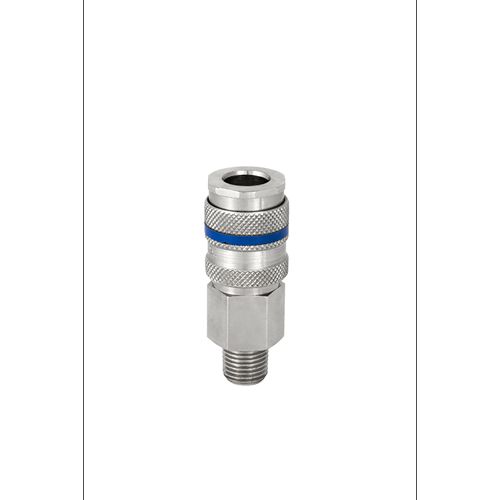 This is Aluminium Brass Steel Female Pneumatic Quick Connect Coupling 10mm Hose Barb manufactured by RS PRO. The manufacturer part number is 325-464. It has a male gender thread . A quality product with a nice nickel plated finish. It features 35bar maximum operating pressure. It has a standard 10mm hose barb connection . The threaded is a bspt standard. The product is made from highly stable and reliable brass, steel. It complies with euro 7.4 connection standard . The threaded connection is bspt 1/8 male. It coupling is of female gender . It has a typical thread size of 1/8in. Its coupling type is quick connect coupling socket . Whereas, the minimum operating temperature of the product is -20°c. Its seal is made using nbr material . It has a maximum operating temperature of 100°c. It allows threaded connection type.