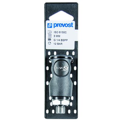 This is Male Pneumatic Quick Connect Coupling G 3/8 Male Male Thread manufactured by PREVOST. The manufacturer part number is CSI 081152CP. It complies with iso 6150-c connection standard . The threaded connection is g 3/8 male. It coupling is of male gender . It has a typical thread size of 3/8in. Its coupling type is quick connect coupling . It allows male thread connection type.