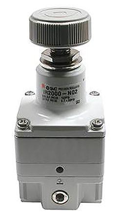 This is NPT 1/4 Regulator ≤4.4L/min manufactured by SMC. The manufacturer part number is IR2000-N02. Provides npt 1/4 of port connection. Furthermore, it has a maximum 1mpa input pressure . It is has an integral check valve yes . It has a standard 1/4 port connection thread size . The product provides up to ≤4.4l/min maximum flow rate. The product has a ir2000 manufacturer series. Whereas, the minimum operating temperature of the product is -5°c. In addition, it has a port connection of npt thread standard . It has a maximum operating temperature of +60°c.