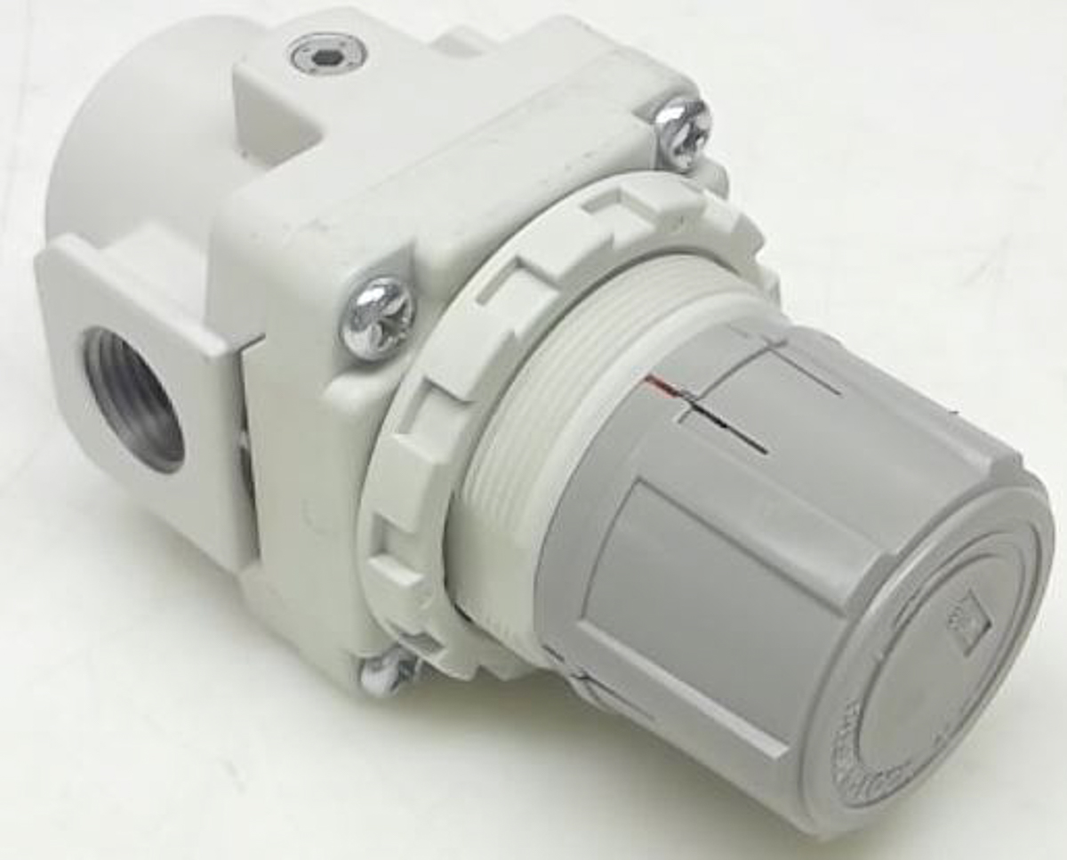 This is NPT 1/2 Pneumatic Regulator 0.1L/min 0.05 → 0.85Mpa manufactured by SMC. The manufacturer part number is AR40-N04-Z-A. Provides npt 1/2 of port connection. Furthermore, it has a maximum 1mpa input pressure . It is has an integral check valve without check valve . It has a maximum 0.85mpa outlet pressure . Additionally, it has a pressure gauge port of 1/4in thread size . The product has a minimum 0.05mpa outlet pressure . It has a/an npt 1/4 port size pressure gauge . It has a standard 1/2in port connection thread size . The product provides up to 0.1l/min maximum flow rate. The product has a ar manufacturer series. Whereas, the minimum operating temperature of the product is -5°c. In addition, it has a port connection of npt thread standard . It has a maximum operating temperature of +60°c. Additionally, the product has a pressure gauge port of npt thread standard .