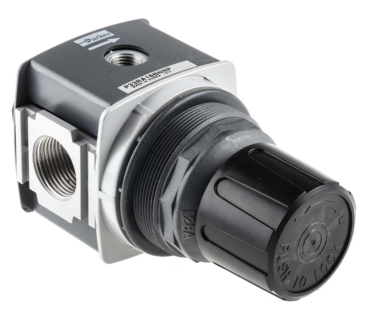 This is G 3/4 Regulator 212scfm 0 → 8bar manufactured by Parker. The manufacturer part number is P33RA16BNNP. Provides g 3/4 of port connection. It has a maximum 8bar outlet pressure . It is has an integral check valve yes . Furthermore, it has a maximum 20bar input pressure . The product has a minimum 0bar outlet pressure . It has a standard 3/4in port connection thread size . The product provides up to 212scfm maximum flow rate. The product has a p33 manufacturer series. Whereas, the minimum operating temperature of the product is -25°c. In addition, it has a port connection of g thread standard . It has a maximum operating temperature of +65.5°c.