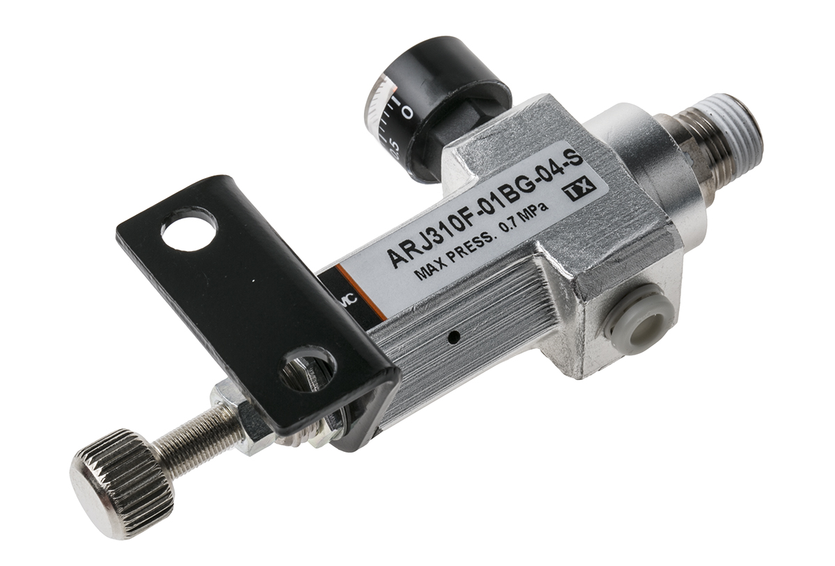 This is M5 x 0.8 R 1/8 Pneumatic Regulator 0.2 → 0.7Mpa manufactured by SMC. The manufacturer part number is ARJ310F-01BG-04-S. Provides m5 x 0.8, r 1/8 of port connection. Furthermore, it has a maximum 0.8mpa input pressure . Whereas, the minimum operating temperature of the product is -5°c. It is has an integral check valve without check valve . It has a maximum 0.7mpa outlet pressure . Additionally, it has a pressure gauge port of 1/8in thread size . The product has a minimum 0.2mpa outlet pressure . It has a/an rc 1/8 port size pressure gauge . It has a standard 1/8 in, m5 x 0.8 port connection thread size . The product has a arj310 manufacturer series. In addition, it has a port connection of metric, r thread standard . It has a maximum operating temperature of +60°c. Additionally, the product has a pressure gauge port of rc thread standard .