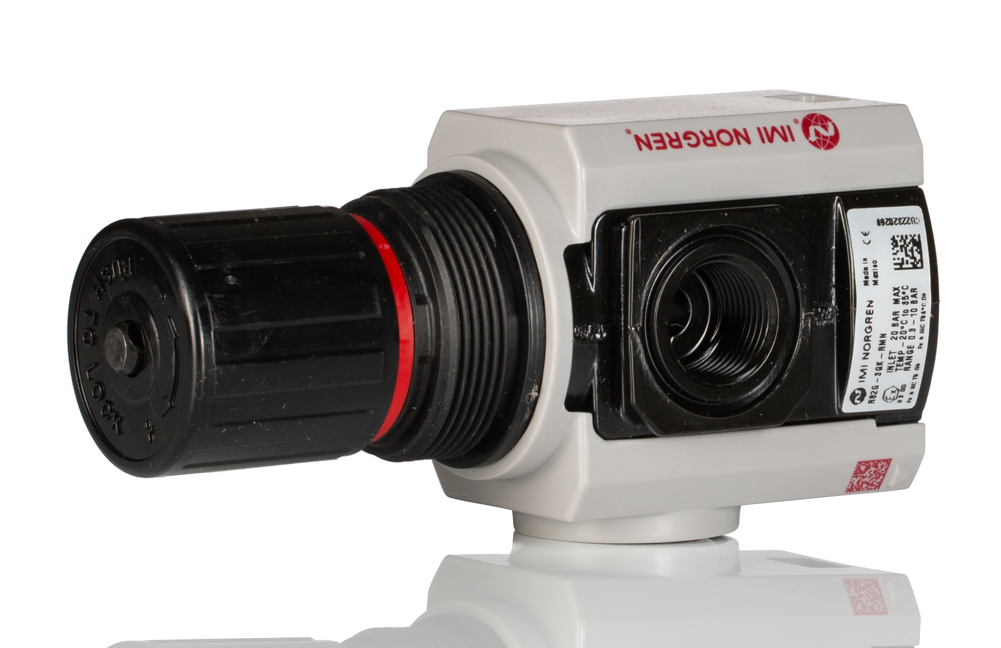 This is G 3/8 Pneumatic Regulator - 0.3bar to 10bar manufactured by IMI Norgren. The manufacturer part number is R82G-3GK-RMN. Provides g 3/8 of port connection. Furthermore, it has a maximum 10bar input pressure . The product has a minimum 0.3bar outlet pressure . The product has a r82g manufacturer series. It has a maximum 10bar outlet pressure .