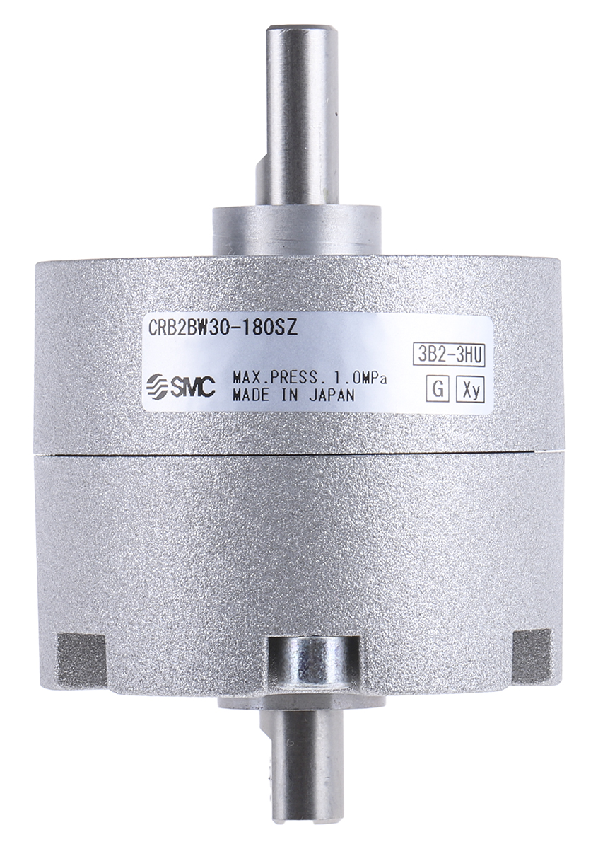 This is Double Acting Rotary Actuator 180° Swivel M5 x 0.8 Port manufactured by SMC. The manufacturer part number is CRB2BW30-180SZ. Provides m5 x 0.8 of port connection. While the product has supplied with rubber cushioning. It features 1 mpa maximum operating pressure. The typical product's weight is 198g. The product has a crb manufacturer series. Concerning its action options, it allows double action. The bore with 30mm of dimensions. Its rotary angle is 180° .