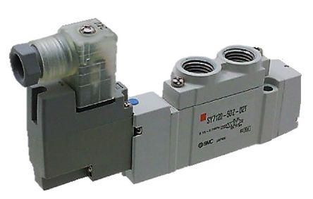 This is SY7000 One-touch Fitting 8 mm 5/2 Solenoid/Pilot Manifold Pneumatic Solenoid/Pilot-Operated Control Valve manufactured by SMC. The manufacturer part number is SY7120-5D-C8. It performs basic function of 5/2. The product is available in manifold style. It includes a fitted solenoid yes . It features 0.7 mpa maximum operating pressure. It has a minimum 0.15mpa operating pressure . It also features one-touch fitting 8 mm connection port thread. It has 24v dc solenoid voltage . It has a typical thread size of 8mm. This product features 5/2 number of ports. The product's body is nicely designed from die cast aluminium materials. The product has a sy7000 manufacturer series. It also features solenoid/pilot actuation. Its solenoid power consumption is approximately 0.5w . It has a maximum operating temperature of +50°c.