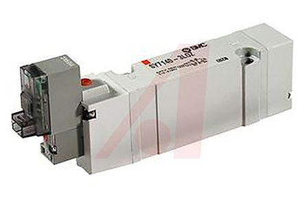 This is SY7000 5/2 Solenoid/Pilot Base Pneumatic Solenoid/Pilot-Operated Control Valve manufactured by SMC. The manufacturer part number is SY7140-5LOZ. It performs basic function of 5/2. It includes a fitted solenoid yes . It features 0.7 mpa maximum operating pressure. It has a minimum 0.15mpa operating pressure . It has 24v dc solenoid voltage . The product is available in base style. This product features 5/2 number of ports. The product's body is nicely designed from die cast aluminium materials. The product has a sy7000 manufacturer series. It also features solenoid/pilot actuation. It has a maximum operating temperature of +50°c. Its solenoid power consumption is approximately 0.55w .