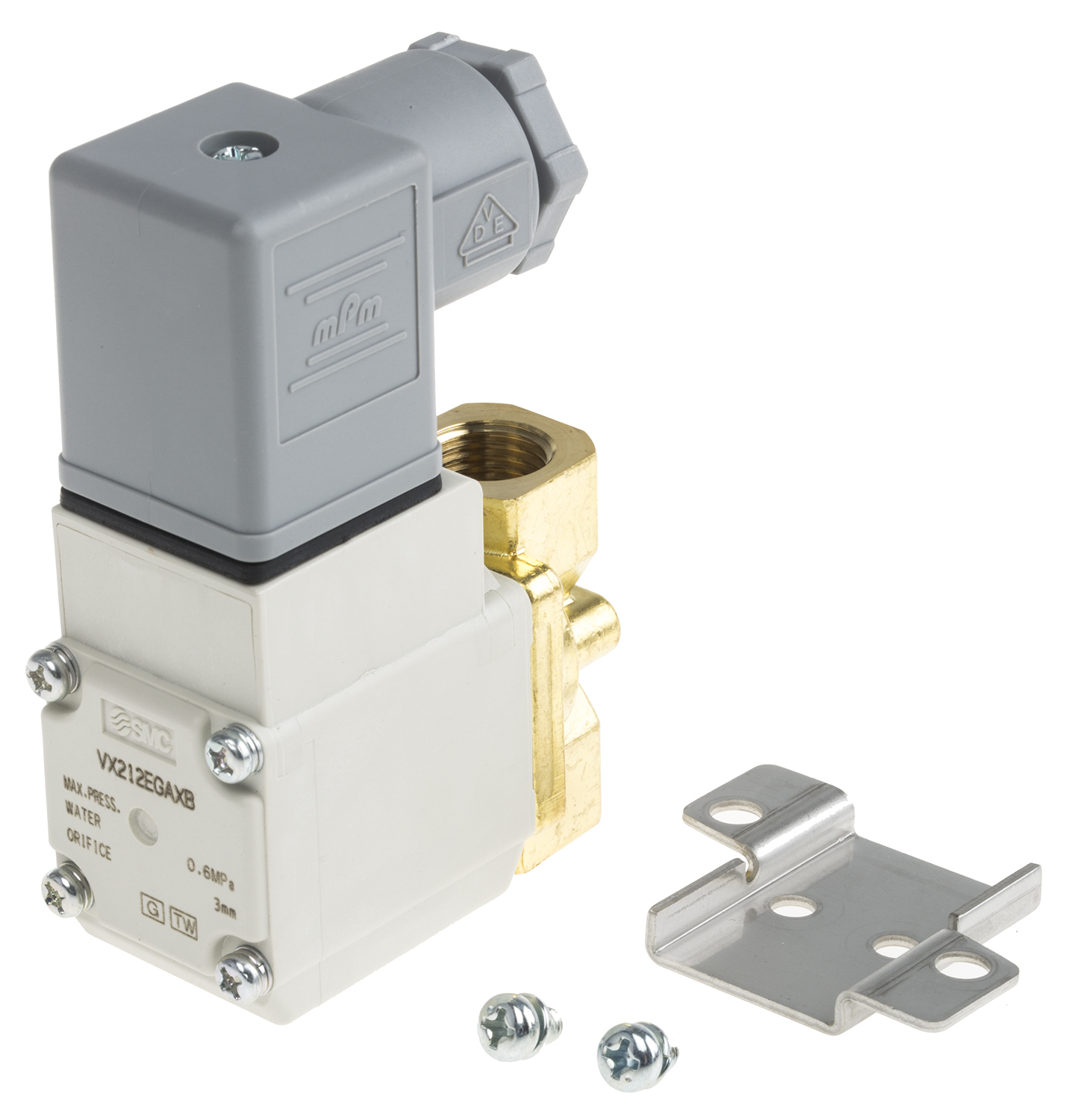 This is VX21 G 1/4 2/2 Solenoid/Spring Pneumatic Solenoid Valve manufactured by SMC. The manufacturer part number is VX212EGAXB. It performs basic function of 2/2. Whereas, the minimum operating temperature of the product is -20°c. It features 1 mpa maximum operating pressure. The threaded is a g standard. It also features g 1/4 connection port thread. It has 24v dc solenoid voltage . It has a typical thread size of 1/4in. This product features 2 number of ports. The product's body is nicely designed from brass materials. The product has a vx21 manufacturer series. It also features solenoid/spring actuation. Its solenoid power consumption is approximately 4.5w . The product is available in normally closed configuration. It has a maximum operating temperature of +60°c. The product carries possible position value of 2.
