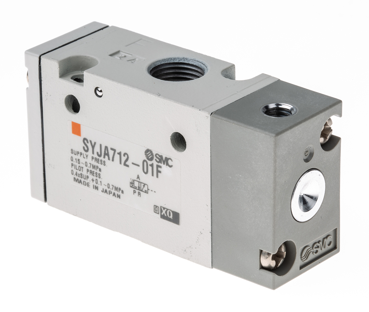 This is SYJA700 G 1/8 3/2 Pilot/Spring Stand-Alone Pneumatic Control Valve 490.75nl/min manufactured by SMC. The manufacturer part number is SYJA712-01F. The product is available in stand-alone style. Whereas, the minimum operating temperature of the product is -10°c. It features 0.7 mpa maximum operating pressure. This product features 3/2 number of ports. The threaded is a g standard. It also features g 1/8 connection port thread. It has a typical thread size of 1/8in. The product provides up to 490.75nl/min maximum flow rate. The product has a syja700 manufacturer series. It also features pilot/spring actuation. It has a minimum 0.15mpa operating pressure . It has a maximum operating temperature of +50°c.