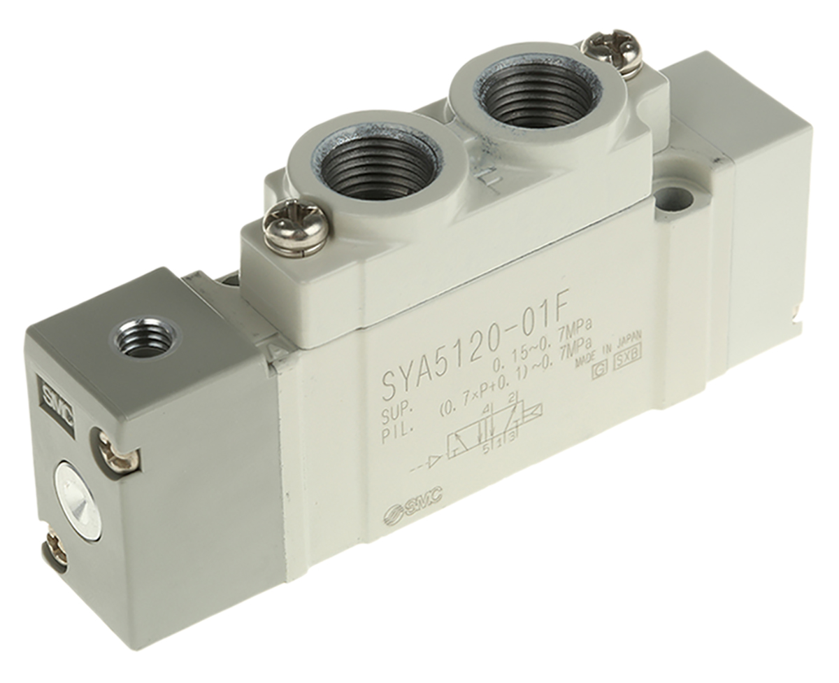 This is SYA5000 G 1/8 5/2 Pilot/Pilot Stand-Alone Pneumatic Control Valve 578nl/min manufactured by SMC. The manufacturer part number is SYA5120-01F. It performs basic function of 5/2. The product is available in stand-alone style. It features 0.7 mpa maximum operating pressure. The product provides up to 578nl/min maximum flow rate. The threaded is a g standard. It also features g 1/8 connection port thread. It has a typical thread size of 1/8in. This product features 5/2 number of ports. The product has a sya5000 manufacturer series. It also features pilot/pilot actuation. It has a minimum 0.15mpa operating pressure . It has a maximum operating temperature of +60°c.