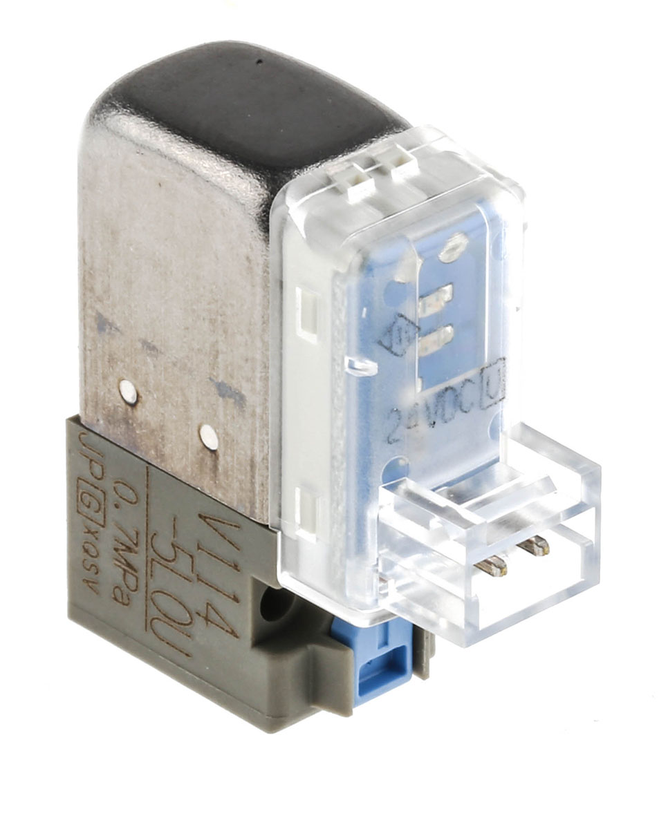 This is V100 3/2 Spring/Solenoid Manifold Pneumatic Control Valve 14.2L/min manufactured by SMC. The manufacturer part number is V114-5LOU. It performs basic function of 3/2. It includes a fitted solenoid yes . It features 0.7 mpa maximum operating pressure. The product provides up to 14.2l/min maximum flow rate. The threaded is a metric standard. It also features m5 x 0.8 connection port thread. Whereas, the minimum operating temperature of the product is -10°c. It has 24v dc solenoid voltage . The product is available in base mount style. This product features 3/2 number of ports. The product's body is nicely designed from resin materials. The product has a v100 manufacturer series. It also features spring/solenoid actuation. It has a minimum 0mpa operating pressure . It has a maximum operating temperature of +50°c. Its solenoid power consumption is approximately 0.35w .