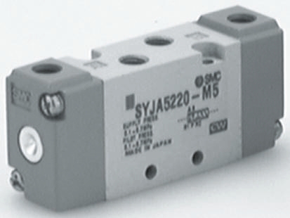 This is SYJA5000 Metric M5 x 0.8 5/2 Pilot/Pilot Stand-Alone Pneumatic Control Valve 129L/min manufactured by SMC. The manufacturer part number is SYJA5220-M5. It performs basic function of 5/2. Whereas, the minimum operating temperature of the product is -10°c. It features 0.7 mpa maximum operating pressure. The product provides up to 129l/min maximum flow rate. The threaded is a metric standard. It also features metric m5 connection port thread. The product is available in stand-alone style. This product features 5/2 number of ports. The product's body is nicely designed from die cast aluminium materials. The product has a syja5000 manufacturer series. It also features pilot/pilot actuation. It has a minimum 0.1mpa operating pressure . It has a maximum operating temperature of +50°c.