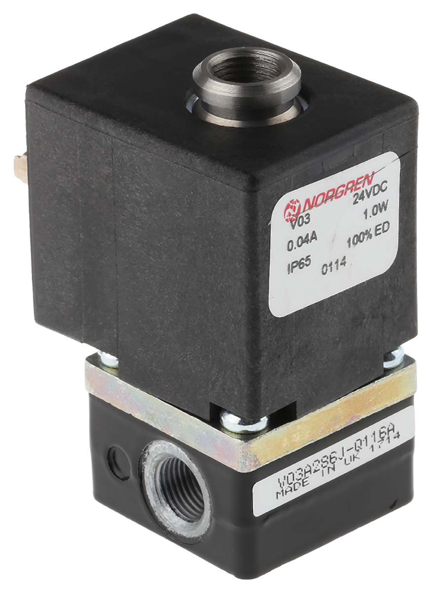 Norgren - V03A286J-B613A - G 1/8 2/2 Solenoid/Spring Manifold Pneumatic Control Valve, 30L/min - Zinc Alloy