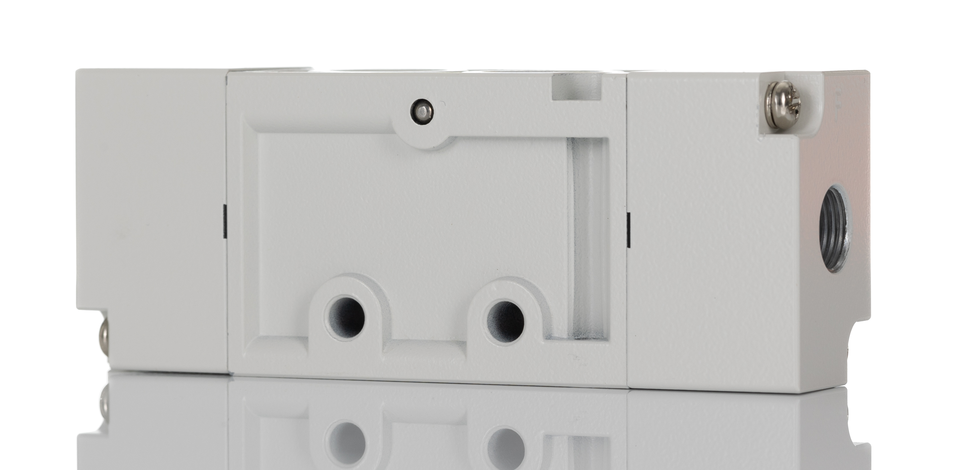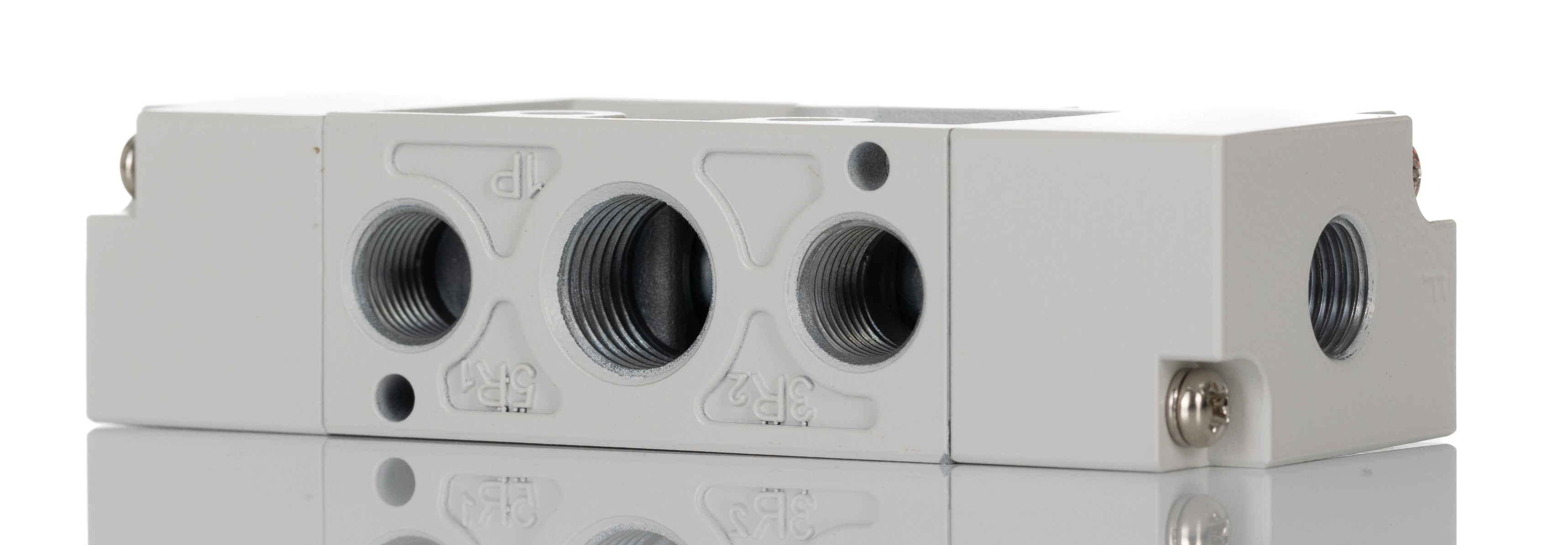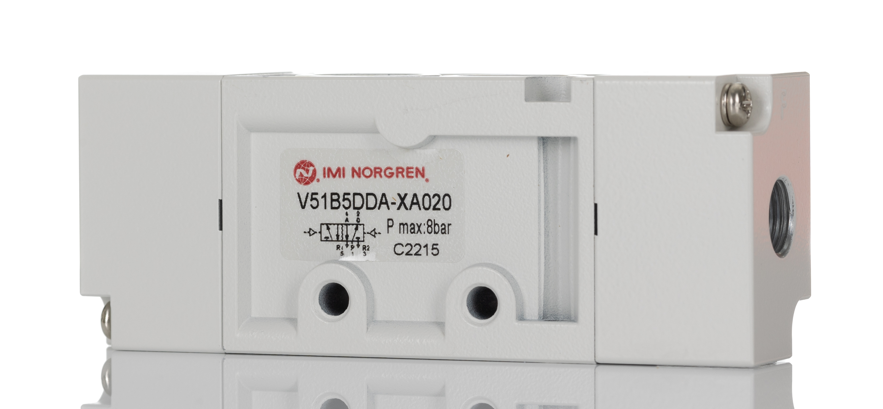 This is RS PRO V51 G 1/4 Pilot/Air Inline Manifold Pneumatic Pilot Operated Valves 1020L/min manufactured by RS Pro. The manufacturer part number is 907-6371. The product is available in inline, manifold style. Whereas, the minimum operating temperature of the product is -5°c. It features 8bar maximum operating pressure. The product provides up to 1020l/min maximum flow rate. The threaded is a g standard. It also features g 1/4 connection port thread. It has a typical thread size of 1/4in. This product features 5 number of ports. The product's body is nicely designed from die cast aluminium materials. The product has a v51 manufacturer series. It also features air actuation. It has a minimum 0bar operating pressure . The product also provides special features, such as compact and robust design, high flow in-line valves, low power energy efficient solenoids. The product is available in 5/2 configuration. It has a maximum operating temperature of +60°c. The product carries possible position value of 2.