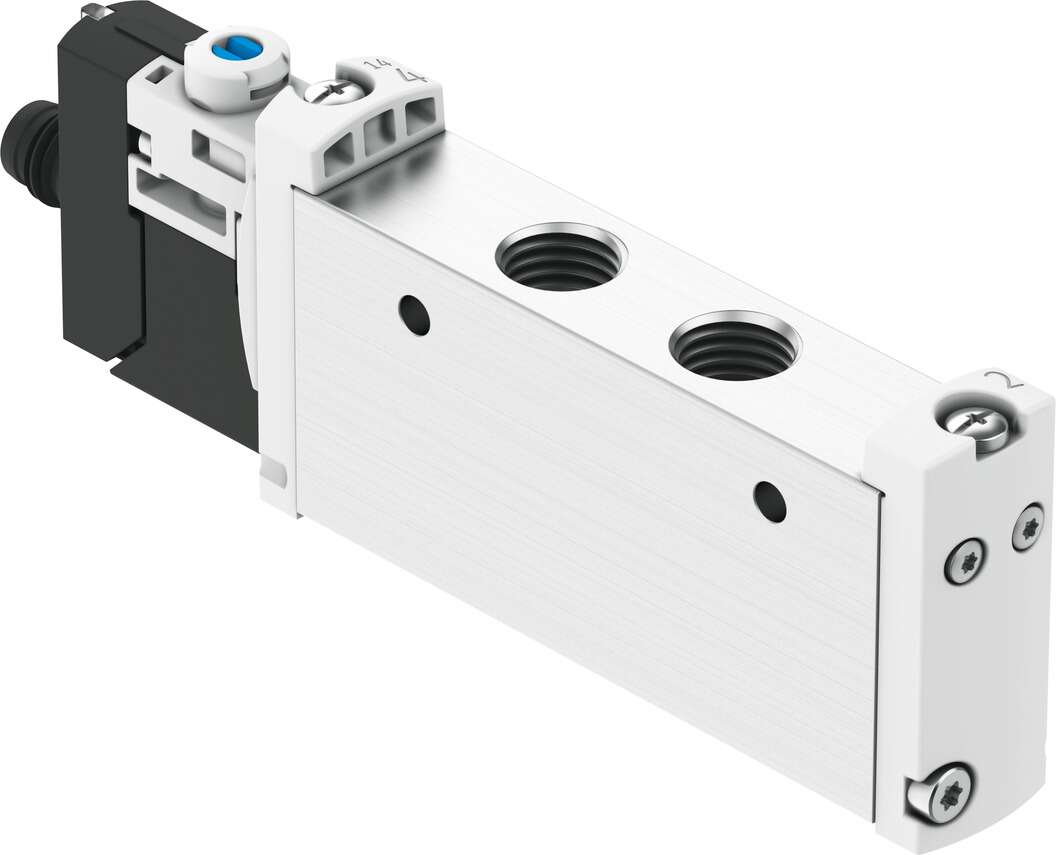 This is solenoid valve manufactured by Festo. The manufacturer part number is VUVG-L14-M52-AT-G18-1R8L. It performs basic function of 5/2. The product is available in inline style. It includes a fitted solenoid yes . Whereas, the minimum operating temperature of the product is -5°c. It features 8bar maximum operating pressure. The product provides up to 730l/min maximum flow rate. The threaded is a g standard. It also features g 1/8 connection port thread. It has 24v dc solenoid voltage . It has a typical thread size of 1/8in. This product features 5 number of ports. The product's body is nicely designed from aluminium alloy materials. The product has a vuvg manufacturer series. It also features solenoid actuation. It has a minimum 2.5bar operating pressure . Its solenoid power consumption is approximately 1w . It has a maximum operating temperature of +60°c. The product carries possible position value of 2.