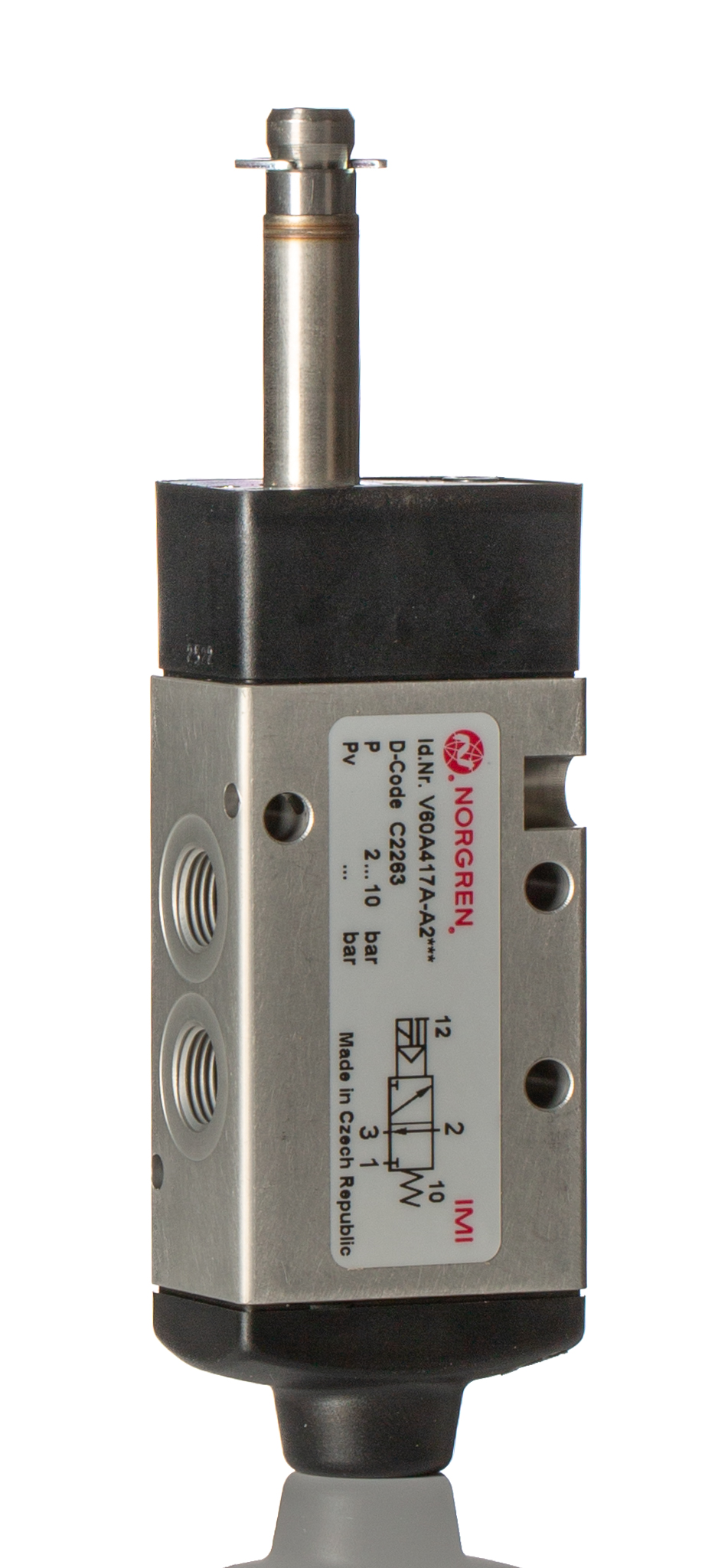 This is Pneumatic Solenoid Valve - Solenoid/Spring V60 Series manufactured by IMI Norgren. The manufacturer part number is V60A417A-A2000. The product is available in inline style. The product has a v60 manufacturer series. It also features solenoid/spring actuation.