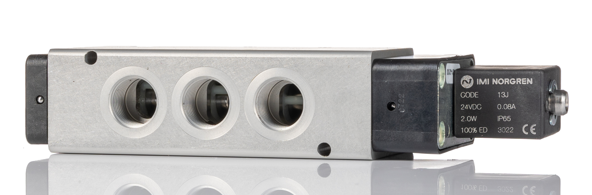 This is 5/2 Pneumatic Solenoid Valve - Solenoid/Air G 3/8 V62 Series manufactured by Norgren. The manufacturer part number is V62C513A-A213J. It performs basic function of 5/2. The product is available in inline style. Whereas, the minimum operating temperature of the product is -10°c. It features 10 bar maximum operating pressure. The product provides up to 2600l/min maximum flow rate. The threaded is a g standard. It also features g 3/8 connection port thread. It has a typical thread size of 3/8in. This product features 5 number of ports. The product's body is nicely designed from aluminium materials. The product has a v62 manufacturer series. It also features solenoid/air actuation. It has a minimum 2bar operating pressure . It has a maximum operating temperature of +50°c. The product carries possible position value of 2.