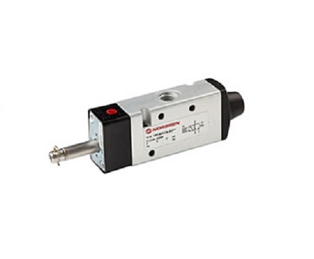 This is NC Pneumatic Solenoid Valve - Solenoid/Spring G 3/8 V62 Series manufactured by Norgren. The manufacturer part number is V62C417A-A2000. It performs basic function of nc. Whereas, the minimum operating temperature of the product is -10°c. It features 10 bar maximum operating pressure. The product provides up to 4500l/min maximum flow rate. The threaded is a g standard. It also features g 3/8 connection port thread. The product is available in inline style. This product features 3/2 number of ports. The product's body is nicely designed from aluminium materials. The product has a v62 manufacturer series. It also features solenoid/spring actuation. It has a minimum 2bar operating pressure . The product is available in 3/2 configuration. It has a maximum operating temperature of +50°c.