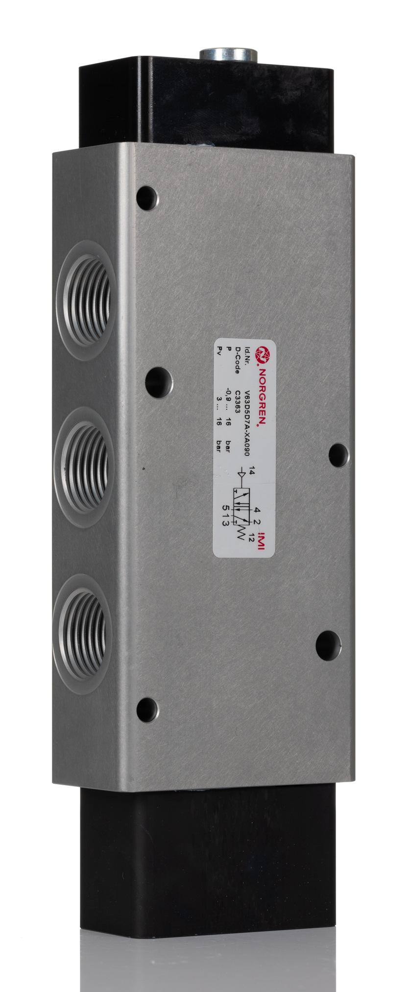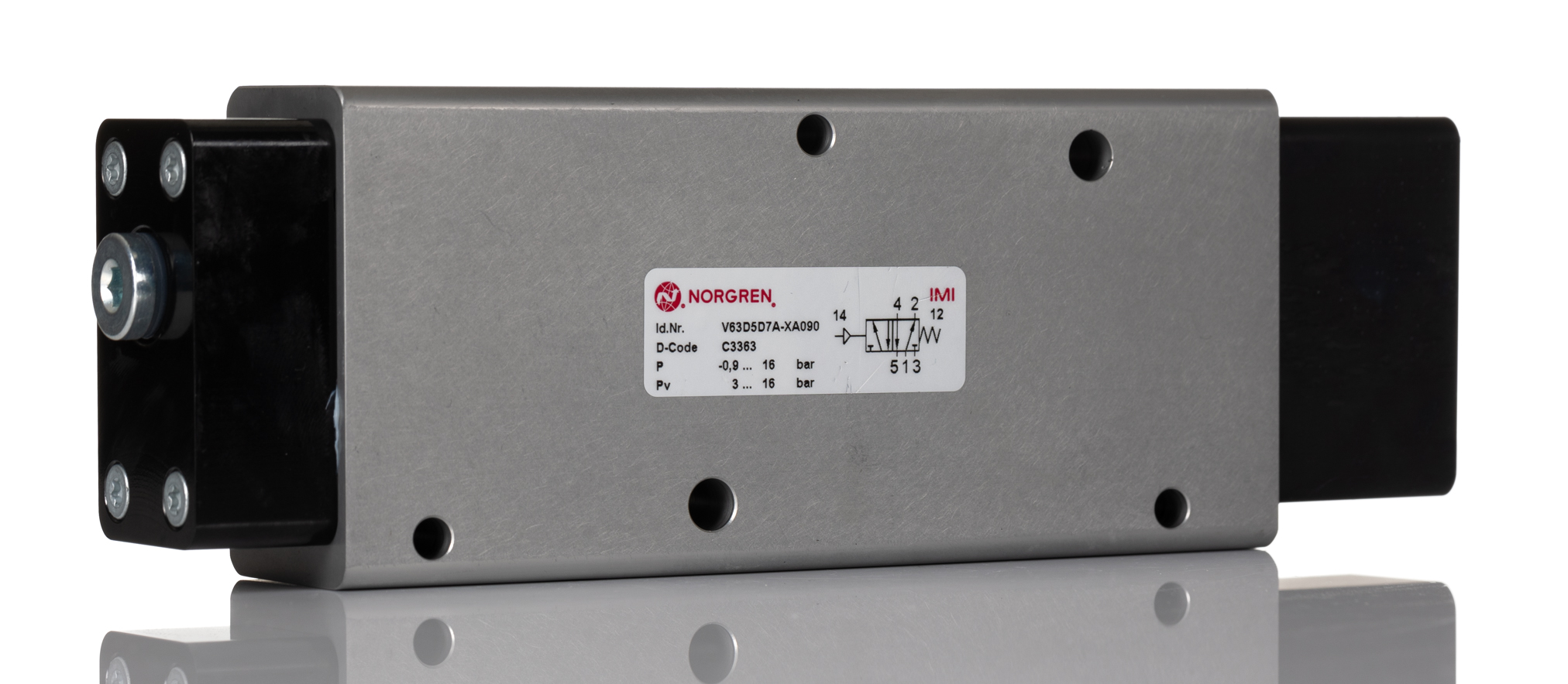 This is Solenoid Pilot Valve - Pilot/Spring G 1/2 V63 Series manufactured by Norgren. The manufacturer part number is V63D5D7A-XA090. The product is available in inline style. Whereas, the minimum operating temperature of the product is -10°c. The product provides up to 4500l/min maximum flow rate. The threaded is a g standard. It also features g 1/2 connection port thread. It has a typical thread size of 1/2in. This product features 5/2 number of ports. The product's body is nicely designed from aluminium materials. The product has a v63 manufacturer series. It also features pilot/spring actuation. The product is available in 5/2 configuration. It has a maximum operating temperature of +50°c.